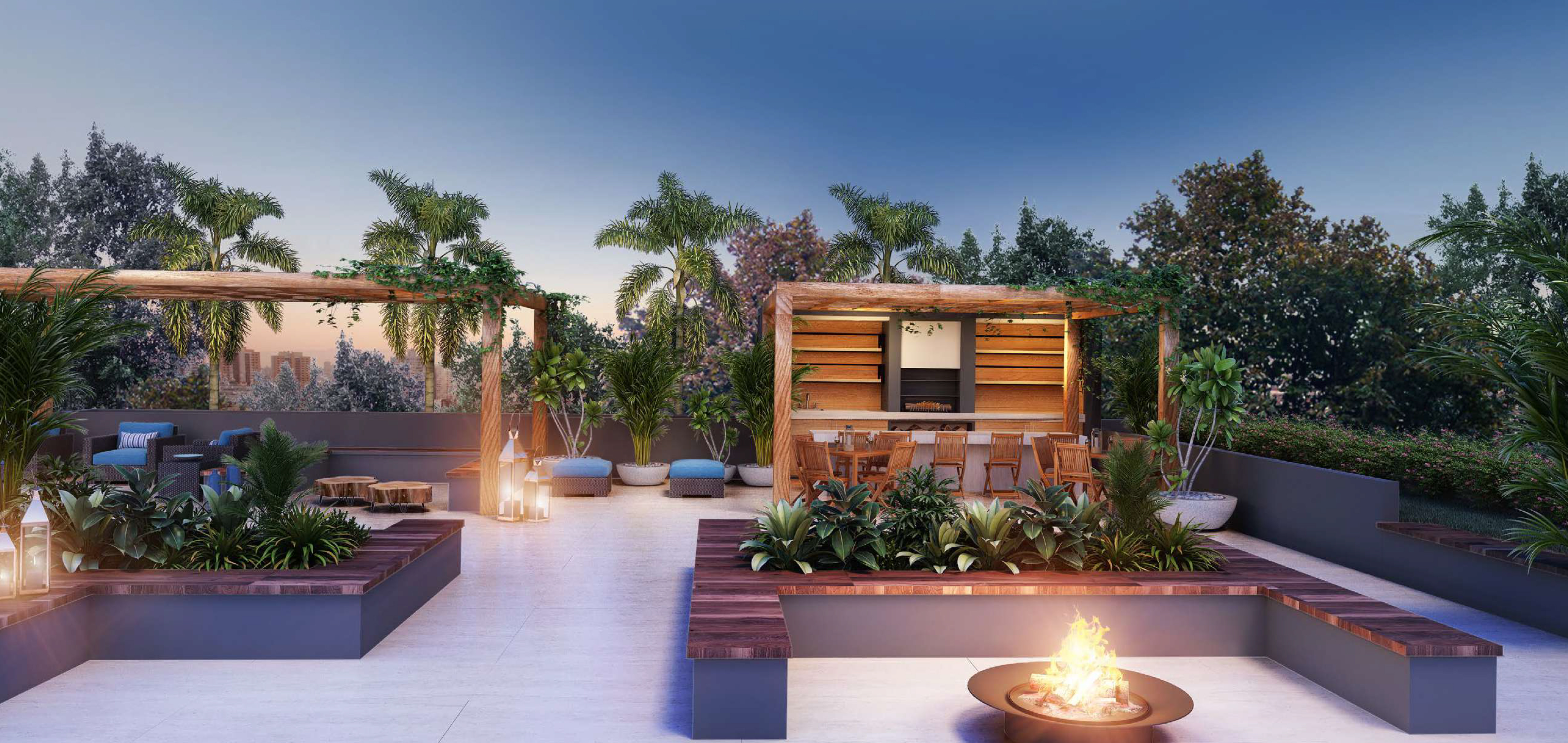 Bicicletário, Brinquedoteca, Business Place, Churrasqueira condomínio, Deck molhado, Elevador social, Espaço Gourmet, Fire place, Fitness, Jardim, Lounge, Pet place, Piscina adulto, Playground, Portaria, Sala de jogos, Salão de festas, Segurança, Terraço coletivo e Tomada para carro elétrico.
